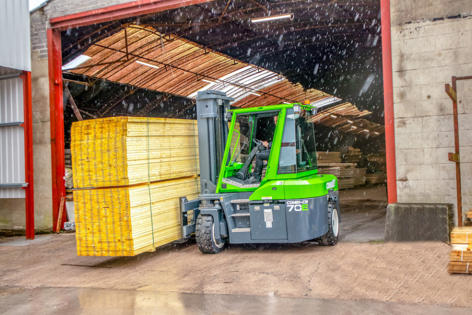 Der neue Combi-CB70E ist eine weitere Ergänzung der ständig wachsenden Palette von Combilift-Elektrostaplern, die sich durch hohe Leistung, lange Batterielebensdauer und unübertroffene Ergonomie auszeichnen. Dieses Modell hat die neue, leuchtende Combi-Grün-Farbe, die zum ersten Mal auf dem kürzlich eingeführten Combi-CUBE-Produkt zu sehen war. Er ist der kürzeste Gegengewichtsstapler mit 7 t Tragfähigkeit auf dem Markt und seine multidirektionale Fähigkeit ermöglicht den vielseitigen, platzsparenden Transport von langen und sperrigen Lasten.